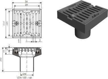 Obr. 8 3D model podlahové vpusti Ty svojí konstrukcí umožňují na tzv. límec napojit izolaci podlahy terasy a buď kolmým nebo bočním odtokem svést vodu do např. okapového systému ukončeného lapače střešních splavenin – geigrem. Již více než 10 let se dle požadavků investorů a projektantů se geigery (lapače střešních splavenin) vyrábí kromě standardního profilu 100 a 125 i v profilech 150 a 200 mm, kdy se osvědčily pro zachycení vod ze střech například zámeckých objektů.