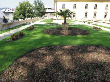 Důležitým detailem bylo zajištění dilatace, aby při náhodném zamrznutí zeminy nedošlo k bočním tlakům na balustrádu. Proto jsou ve skladbě vrstev aplikovány svislé pruhy stlačitelných materiálů, schopných eliminovat tyto pohyby. V ploše terasy jsou provedeny cestičky, vytvořené směsí písku, jílu a drceného vápence, která je upravena tak, aby bránila prorůstání trávy. Cesty jsou od zeminy odděleny žárově zinkovaným plechem tl.
