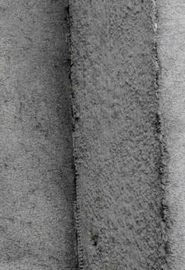 Obrázek 3 – Trhlina způsobená nedostatečným překrytím výztužné sítě Obrázek 4 – Výztužná síť není uložena do výztužné hmoty, ale přímo na tepelný izolant – vedle skutečnosti, že nelze dodržet požadavek na uložení sítě v 1/3 od vnějšího povrchu, existuje výrazné riziko, že nedojde k plnoplošnému přilnutí výztužné hmoty k tepelnému izolantu
