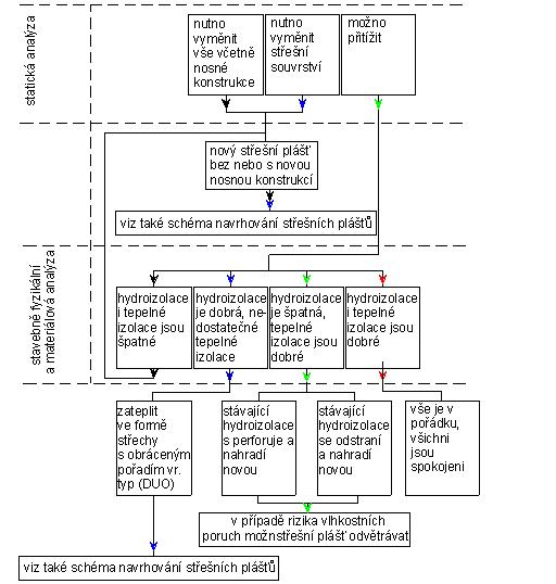 Schéma postupu rozhodování při řešení rekonstrukce střešních plášťů