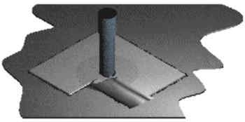 Konstrukční schéma odvětrávacího komínku. Pod zesilujícím pasem je vidět příruba tohoto střešního prvku.