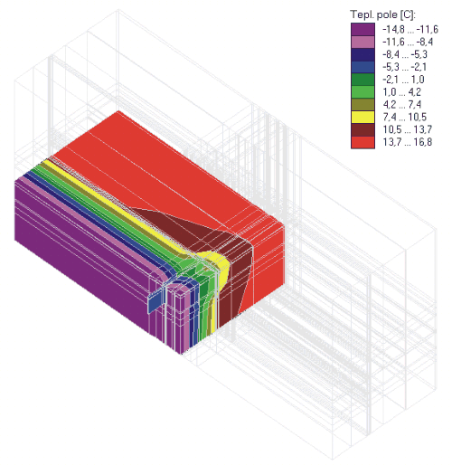 ZávěrPoužitím orientačního výpočtu pomocí jednorozměrného vedení tepla bez započítání vlivu tepelných mostů byla u hodnocené konstrukce hodnota součinitele prostupu tepla snížena o 22,5 %, povrchové teploty se liší téměř o 2 °C.Použití orientačního výpočtu pomocí jednorozměrného vedení tepla se započítáním vlivu tepelných mostů pomocí katalogových hodnot nemůže být u složitějších konstrukcí pro nedostatečnou nabídku katalogových detailů vůbec použito. Výpočet pomocí jednorozměrného vedení tepla se započítáním vlivu tepelných mostů pomocí hodnoty získané odvozením z 3D výpočtu a výpočet 3D vedení tepla celého typického segmentu fasády musí při korektním modelu dávat srovnatelné výsledky. Při nekorektním výpočtu – zde uvedený příklad – tvoří rozdíl v povrchových teplotách více než 4 °C. |