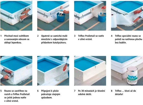 Nejen plošné těsnění, ale i řešení ukončení a detailů rozhoduje o těsnosti ploché střechy. Pokud existuje jediné slabé místo, je ohrožena funkčnost všech vrstev konstrukce. Právě při jednotlivých opravách nebo kompletní sanaci může být počet a komplexnost detailů rozhodující pro použití tekutých umělých hmot. Neboť pouze s tekutým těsněním je možné provést dané skutečnosti na střeše přesně podle potřeby a vytvořit homogenní bezešvé řešení. Triflex má třicetileté zkušenosti se sanováním budov dlouhověkými těsnícími a povrchovými systémy. Triflex ProDetail je speciálně vyvinutý těsnící systém pro ukončení, který dlouhodobě a bezpečně chrání detaily.