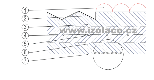 Penetrace vložky je technologicky velmi náročná operace, přičemž modifikovaným asfaltem je složitější než oxidovanými. Celková tloušťka této vrstvy je od 0.5 mm do 1.5 mm čím tenčí je tato vrstva tím lépe. V některých případech se této vrstvy používá ke zlevnění výsledného hydroizolačního materiálu, kdy tato vrstva je z oxidovaného asfaltu a tvoří až 1/3 tloušťky asfaltového hydroizolačního materiálu. |