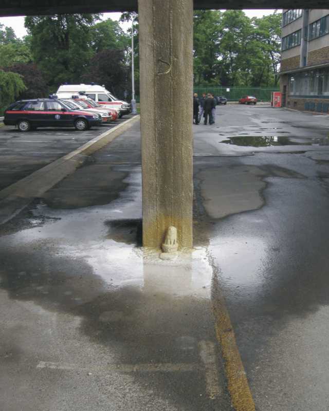 Jedním ze závažných problémů u pochozích, ale i u jiných užitných střešních plášťů, je vyplavování vápenných složek z betonu. Jedná se o obvyklý fenomén, ale s velmi nepříjemnými důsledky. Tyto důsledky jsou patrné i na následujících fotografiích.