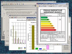 Obr. 2 Průkaz energetické náročnosti a grafické výstupy programu Energie 2008 Hodnocená budova může být v programu Energie rozdělena až na 99 zón, přičemž pro každou ze zón je možné zadat až tři různé zdroje energie pro vytápění, pro chlazení i pro přípravu teplé vody (obecný kotel či výměník, tepelné čerpadlo, kogenerační jednotka atd.). V energetické bilanci lze zohlednit účinnosti zdrojů tepla, účinnosti distribuce a emise tepla, vliv vnitřních zisků (od osob, spotřebičů a osvětlení), vliv pasivních solárních zisků (přes okna, zimní zahrady, Trombeho stěny, solární ventilační stěny a průsvitné tepelné izolace) a vliv aktivních solárních zisků (solární kolektory a fotovoltaické články). Přerušované vytápění či chlazení lze započítat také, stejně jako různé strategie větrání (přirozené, nucené, nucené se zpětným získáváním tepla). Samotné stavební řešení budovy se ve výpočtu projeví jednak prostřednictvím dílčích plošných konstrukcí (ve styku s venkovním vzduchem, se zeminou a s nevytápěnými prostory) a jednak prostřednictvím tepelných vazeb mezi nimi. Ve všech případech je možné postupovat ve dvou úrovních přesnosti: buď přibližně nebo přesněji. V případě tepelných vazeb to například znamená, že lze buď zadat orientační přirážku na vliv tepelných vazeb k součiniteli prostupu tepla všech konstrukcí, nebo zadat pro každou tepelnou vazbu její parametry, tj. délku a lineární činitel prostupu tepla. Stejně tak u konstrukcí ve styku se zeminou a ve styku s nevytápěnými prostory lze provést buď detailní výpočet podle evropských norem (EN 13370 a EN 13789), nebo přibližný výpočet s použitím činitelů teplotní redukce. Výsledkem výpočtu je jednak podrobný protokol o výpočtu a jednak požadované dokumenty podle vyhlášky 148/2007 Sb. a ČSN 730540: tedy protokol o energetické náročnosti budov a energetický štítek obálky budovy. Oba dokumenty se otevírají jako šablona v textovém editoru Microsoft Word. Literatura[1] Urban, Kabele, Adamovský, Kabrhel, Musil: Popis metodiky výpočtu vyhodnocení energetické náročnosti budov podle vyhlášky 148/2007 Sb., FSv ČVUT Praha 2007 [2] Urban, Kabele, Adamovský, Kabrhel, Musil: Národní kalkulační nástroj, FSv ČVUT Praha 2007-2008, http://tzb.fsv.cvut.cz/projects/nkn/. [3] Protech s.r.o.: Software ENB, Nový Bor 2008, www.protech.cz. [4] Svoboda, Z. : Software Energie 2008, Kladno 2008, www.kcad.cz. |