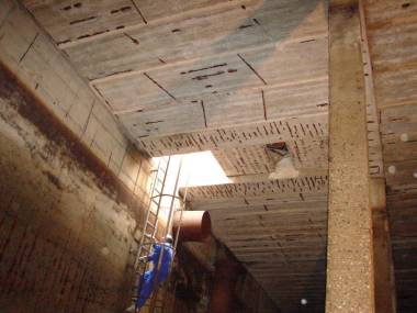 Zdroj: časopis Materiály pro stavbu 1/2011, sborník konference Sanace 2010 Fotogalerie: 1, 2) Původní korozní stav vodojemu Karlov před zahájením prací – strop, stěny |