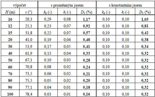 Tabulka 2: Vypočtené hodnoty D1 (%) pro modelovou situaci