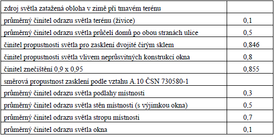 Tabulka 1: Hodnoty použité při modelovém výpočtu