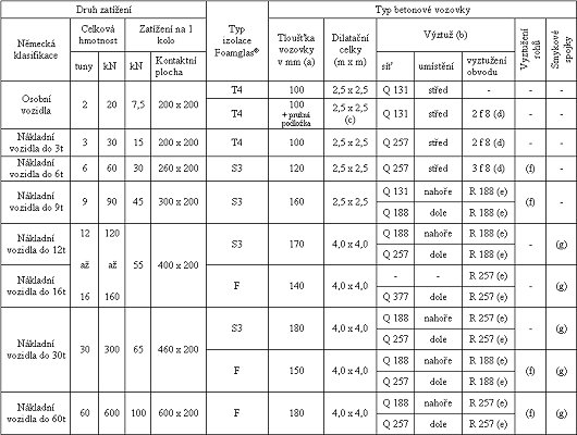 Volba vozovky provedené na kompaktní skladbě a typ použitého pěnového skla závisí především na maximální hmotnosti vozidel. I když lze díky vysoké pevnosti a tuhosti pěnového skla použít i méně únosné vozovky (zámkovou dlažbu, litý asfalt nebo dlažbu na podložkách), nejčastěji se používá železobetonová vozovka. Tato vozovka umožňuje ve spojení s kompaktní skladbou řešit pojezdné střechy pro všechny typy vozidel - viz tabulka 2.