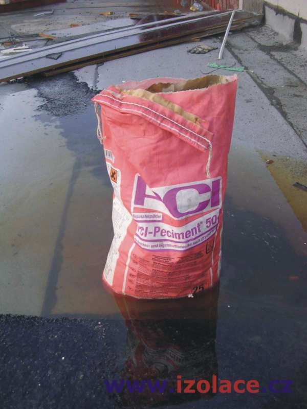 20.8.2004 - Jak správně skladovat materiál ... Velkou bolestí téměř každé stavby je správné skladování materiálu. Na tomto snímku je patrný klasický příklad skladování suché maltové směsi. Bohužel není pořád jenom pěkné počasí, sem tam i sprchne a můžeme celý pytel rovnou vyhodit...