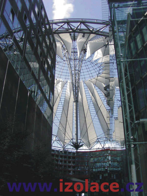 6.10.2004 - Střecha, která skoro létá V dnešním stavebnictví není skoro nic nemožné. Když stanete na "nádvoří" Sony centra v Berlíně a zvyhnete hlavu, možná se vám bude zdát, že jste se ocitli v seriálu Star Treck...