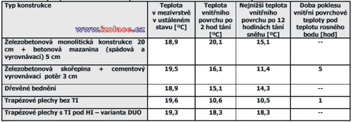 6.1. Tabulka Přehled výsledků hodnocení nestacionárního vedení tepla jednotlivých vybraných typů konstrukce při podtékání vrchní tepelné izolace srážkovou vodou o teplotě 0º C