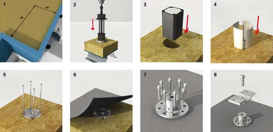Firma SFS intec vyrábí a dodává unikátní sestavu systému SOL-F, skládající se z kompletizovaných upevňovacích prvků , z montážních přípravků a výpočetního programu, pro bezpečné, přizpůsobivé a rychle montovatelné upevnění konstrukce či nosných profilů technologických zařízení na ploché střeše.