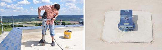 Rychlý: - montáž kotvy bez narušení nosné konstrukce a bez poškození parozábrany - vrtací zařízení je přizpůsobeno požadavkům na rychlost a spolehlivost montáže - kotvení bez dodatečných svarů a těsnění hydroizolace, čímž se postup montáže velmi zrychluje a stavební náklady se snižují na minimum