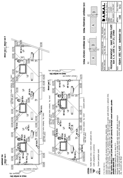 Příklad půdorysu a detailu ve výkresové dokumentaci pro střešní pláště
