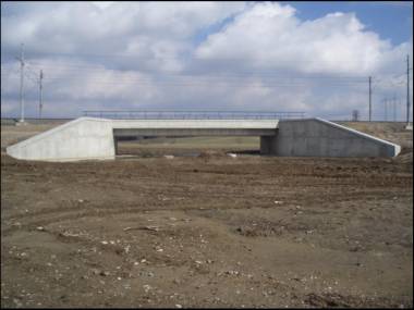V roce 2007 byl v km 20,175 trati Česká Třebová – Olomouc v rámci realizace stavby „Moravská Sázava, poldr Žichlínek“ vybudován inundační železniční most, který je zřejmě prvním integrálním železničním mostem na území České republiky. Vzhledem k této skutečnosti byl na mostě zahájen dlouhodobý monitoring, který probíhá ještě v současné době.Integrální mosty Koncepce integrálních mostů představuje moderní řešení pro mosty krátkého a středního rozpětí, umožňující návrh a výstavbu spolehlivých a hospodárných konstrukcí s nízkými nároky na údržbu během doby jejich životnosti. Vzhledem k jejich přednostem jsou integrální mosty stále více rozšířené v řadě zemí světa. Integrální mosty mají obvykle hlavní nosnou konstrukci vetknutou do koncových podpěr (i do mezilehlých podpěr v případě mostů o více polích). Konstrukce je obklopena spolupůsobícím zemním prostředím a je založena buď plošně, nebo na flexibilních pilotových základech. V některých případech je nosná konstrukce na koncových opěrách uložena pomocí ložisek. Podle této skutečnosti se integrální mosty dělí na dvě základní skupiny: − plně integrální mosty, které nemají ani mostní závěry, ani ložiska (obr. 2), − semi-integrální mosty, které nemají mostní závěry, ale mají ložiska (obr.3). U integrovaných mostních konstrukcí lze očekávat především následující výhody: − nižší počáteční náklady – konstrukce není vybavena mostními závěry a obvykle ani ložisky, dále konstrukce vzhledem k rámovému působení umožňuje dosáhnout příznivějšího rozdělení vnitřních sil v provozním stavu i na mezi únosnosti, − větší trvanlivost, delší životnost a nižší potřeba i náklady na údržbu – opět zejména proto, že konstrukce neobsahuje na údržbu náročné části, jako jsou mostní ložiska a mostní závěry, − jednodušší a rychlejší postup výstavby – odpadá náročné a přesné osazení mostních ložisek a dilatačních závěrů s nutností dodržení přísných tolerancí,− u konstrukcí o více polích je možné navrhnout relativně kratší krajní pole, resp. relativně delší vnitřní pole, protože případné tahové reakce na koncové podpěry jsou eliminovány vlastní tíhou těchto podpěr, − větší bezpečnost proti přetížení, protože rámové konstrukce umožňují rozsáhlejší redistribuci vnitřních sil na mezi únosnosti.Cena, kterou platíme za výhody integrálních konstrukcí, je náročnější a nákladnější řešení a dosud i údržba přechodových oblastí, ohrožených poklesy, trhlinami ve vozovce apod. Tyto problémy se však týkají především mostů na pozemních komunikacích (řešení bylo navrženo například v [1]); u železničních mostů s průběžným kolejovým ložem bývají uvedené problémy podstatně méně závažné. Celková koncepce mostu U obce Žichlínek nedaleko České Třebové byla v důsledku povodní v letech 2002 a 2004 navržena záchytná nádrž – poldr, jejíž součástí je i nový inundační železniční most. Poldr i železniční mosty byl realizován v roce 2007. Mezi základními principy, které byly při návrhu uvažovány, byla snaha o realizaci konstrukce bezpečné a spolehlivé, umožňující rychlou a snadnou výstavbu na provozované trati, s rozumnými investičními náklady a – v neposlední řadě – realizace konstrukce s dlouhou životností a minimálními nároky na údržbu. Výsledkem těchto úvah byl návrh mostu s integrální konstrukcí. Most je situován na dvoukolejné železniční trati a je rozdělen podélnou dilatační spárou na dvě samostatné konstrukce. Kromě výše uvedených požadavků ovlivnily koncepci mostu rovněž náročné základové poměry s plastickými jíly pod základy a z toho vyplývající nutnost hlubinného založení.