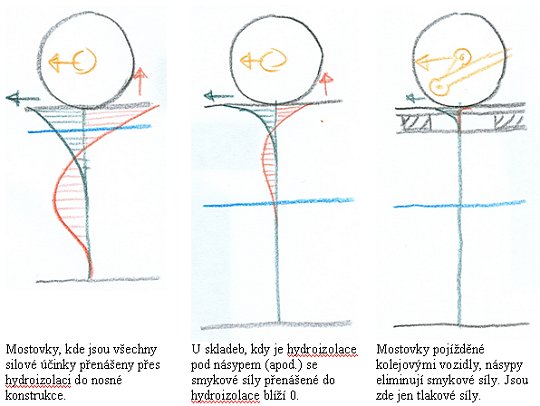 Základní namáhání od pojezdu kolovými a kolejovými vozidly (smykovými a tlakovými silami při rovnoměrné i nerovnoměrném pohybu vozidel):