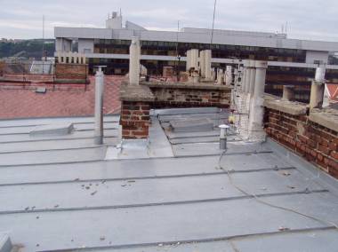 Poměrně nedávno jsem byl svědkem rozhovoru mezi dodavatelem stavby a investorem, který na dotaz k materiálu střešní krytiny nad garáží řekl: „Tu lepenku mi tam nedávejte, ta nic nevydrží, dejte mi tam ten titanzinek, ten je na věky a prý se nemusí ani natírat.“ Od té doby jsem se s podobným názorem setkal ještě několikrát. Nechci se pouštět do srovnávání materiálů, ale chtěl bych se trochu zastavit nad názorem na zmíněný titanzinkový plech. Pokud se zaměříme na titanzinek jako na materiál, tak lze souhlasit s tím, že je to materiál s velkou životností, nenáročný na údržbu a cenově konkurence schopný. Ovšem i zde je nutné připomenout, že existuje mnoho výrobců a dodavatelů, kteří dodávají na trh méně či více kvalitní materiál. Avšak podstatný vliv na životnost materiálu má jeho zabudování do konstrukce. Špatný návrh skladby může dobu životnosti zkrátit na minimum. To je také případ jedné střešní konstrukce, kterou jsem měl možnost vidět. Jedná se o plochou střechu na novostavbě sloužící jako hospodářské stavení. Jde o jednoplášťovou střešní konstrukci s krytinou z titanzinkového plechu, jenž byla odseparována od podkladní betonové vrstvy volně položenou asfaltovou nepískovanou lepenkou. Fotografie dokumentují stav střešní krytiny po dvou letech od realizace stavby. Je z nich patrné, že došlo k rozsáhlé korozi plechu projevující se jednak malými bodovými otvory (foto 2-5) a jednak rozsáhlými „skvrnami“, kde je v podstatě hmota plechu přeměněna v jemný prášek (foto 6-8 – Po odkrytí vrchní vrstvy zkorodovaného plechu je patrná vrstva bílého prášku, která kompletně zakrývá i černou barvu separační lepenky; je zde dobře znatelná i velikost hmoty vzniklé z plechu tl. cca 1 mm). Po důkladnější prohlídce bylo patrné, že jsou poruchy situovány zejména nad spoje v separační lepence. Po prohlídce střechy a rozboru skladby bylo zřejmé, že korozi plechové krytiny způsobuje difundující vodní pára hromadící se pod plechem, kam prochází právě skrz spoje v separační lepence. Ta při své cestě transportuje částečky z betonových vrstev ve skladbě až k titanzinkovému plechu, a tím způsobuje výše zmíněnou korozi. Tento druh koroze se nazývá „bílá koroze“ a je způsoben stykem titanzikového plechu se silikátovými materiály (beton apod.). V našem případě byl problém prohlouben také použitím méně kvalitního plechu, jenž celou záležitost ještě urychlil. Ale i kvalitní plech by v tomto případě vydržel pouze o něco málo déle a poté by také této korozi podlehl. Po výše pospané záležitosti je zřejmé, že jednou z hlavních zásad při použití krytiny z titanzinkového plechu je vytvořit pod ní odvětrávanou mezeru, aby nemohlo docházet k hromadění vlhkosti přímo ve styku s vlastním plechem. Tuto mezeru je možné vytvořit např. separační difúzní folií s nakašírovanou polypropylénovou strukturovanou rohoží ve tvaru nopů výšky cca 8 mm. Kromě zmíněné „bílé koroze“ se u titanzinku můžeme setkat také s pojmem „černá, neboli bitumenová koroze“. Ta je častá zejména u ukončujících plechových prvků na střeše s živičnou izolací. Způsobují ji zvláště oxidované asfaltové pásy, jenž jsou vyrobeny z ropy s velkým obsahem síry. Bitumen je např. při mrholení a dešti vyluhován z asfaltového pásu na titanzinkové oplechování, čímž způsobuje jeho korozi. Ovšem tím není řečeno, že tuto korozi způsobuje každý asfaltový pás. Na minimum je možnost jejího vzniku omezena např. u modifikovaných živičných materiálů s posypem vyrobených z ropy s minimálním obsahem síry. Závěrem lze říci, že kvalitní titanzinkový plech je moderní materiál s mnoha přednostmi a výhodami, ale u kterého je hodně důležitý návrh celkové skladby zvláště z tepelně technického hlediska. Nelze zanedbat ani návrhové okrajové podmínky, zejména parametry vnitřního prostředí, jenž jsou nedílnou součástí správného návrhu skladby. |