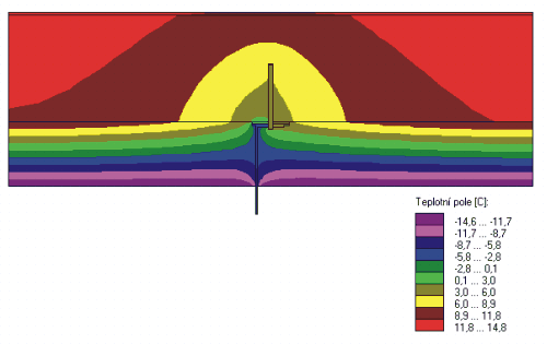 Rozdílný průběh teplot mezi výpočtem ve 2D a 3D je také patrný ze simulace termovize, viz následující obr.1 a 2: