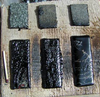 d) Je přípustné použití APP modifikovaného pásu v kombinaci s pásem z oxidovaného asfaltu nebo při zvýšeném mechanickém zatížení? Otázku, jaké jsou skutečné vlastnosti pásů modifikovaných polypropylenem, případně podobných, považuji za velmi závažnou. Dlouho nás přesvědčovali výrobci, že APP pásy (plastomerní) mají být odolnější proti stárnutí, snadno zpracovatelné, vysoce lepivé, vhodné pro opravy starých krytin, odolné proti UV záření i bez ochranného posypu, jak se můžeme dočíst v různých brožurách (obr. 12). S tímto tvrzením se ještě stále setkáváme u prodejců APP pásů na webových stránkách. Řada znalců však v posledních letech publikovala značně odlišné informace. Zjišťovali malé pevnosti spojů APP pásů, vypocování olejů na styčné ploše s asfaltovými pásy jiného složení, ztrátu soudržnosti vrstev APP pásů a další nedostatky. Na podkladě negativních zkušeností omezili někteří výrobci v ČR používání APP pásů v kombinaci s pásy jiného složení. Osobní zkušenosti z poslední doby z rekonstrukce střechy v tropickém klimatu (pro které měly být APP dle dodavatelů zvláště vhodné) i z laboratoří ukázaly nedostatečnou lepivost italských APP pásů, rychlé křehnutí působením vyšších teplot, špatnou adhezi krycí vrstvy k vložce, nadměrnou nasákavost asfaltové hmoty vodou, projevující se pěněním při silném zahřátí (natavování) v porovnání s SBS pásy a další nevýhodné vlastnosti (obr. 13). Zmíněné problémy jsou dosti komplikované, ne zcela vysvětlené a přesahují možnosti výkladu v rámci tohoto článku. Již opakovaně uváděné zkušenosti jsou však značně znepokojující. Bližší také v [11]. Příklad možných důsledků: Při zjištěné závadě v těsnosti spojů může být jako původce vady označen zhotovitel, ačkoliv by se mohlo jednat o fyzikálně-chemické reakce s degradací lepivosti v kontaktu ploch. Těžko bychom však zatím hledali kompetentní rozsouzení.