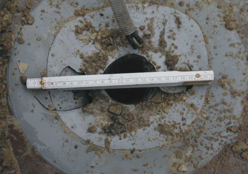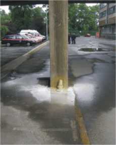 | Detail zanesené části kanalizačního potrubí u paty sloupu. |