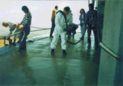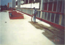 Nesprávně navržená nebo nesprávně provedená střecha negativně ovlivní nejen funkci celé budovy, ale zvýší se tím náklady vynaložené na údržbu a opravu po dobu její životnosti. Proto je třeba navrhnout vhodný hydroizolační systém a to jak z hlediska vodonepropustnosti, tak i z hlediska co nejkvalitnější aplikace hydroizolace na stavbě včetně opracovatelnosti detailů. Polyuretanové hydroizolační systémy z koncernu Degussa umožňují vytvořit právě takové vodotěsné membrány, které dokážou efektivně chránit střešní plášť. Hydroizolační polyuretanové systémy CONIROOF se velice snadno aplikují jak na střechy novostaveb tak i na rekonstruované střechy jakýchkoliv tvarů. Systémy CONIROOF se skládají zpravidla z hydroizolační membrány a ochranného nátěru. K plnoplošnému spojení s podkladem se využívá penetrací (kotevně – impregnační vrstvy) a spojovacích můstků opět na bázi polyuretanu nebo epoxidové pryskyřice. Všechny vrstvy (včetně membrány) se aplikují za studena, čímž se zabrání tvorbě zápachu a snižuje se riziko vzniku požáru, obvyklá u aplikace za horka (např. natavování asfaltových pásů). Hydroizolační systémy byly vyvinuty pro nanášení na většinu typů podkladových materiálů, včetně starého betonu, natavených asfaltových pásů, kotvených či volně ložených fólií z měkčeného PVC, dřevěných či kovových resp. plechových konstrukcí. Pro plnění vysokých estetických nároků se krycí (finální) vrstvy našich systémů dodávají v atraktivních barevných škálách. Hydroizolační systémy CONIROOF lze použít i pro vegetační střechy, neboť splňují požadavky normy DIN 4062 proti prorůstání kořenů. Systémy jsou dále schválené dle nejpřísnějších norem a předpisů EOTA/ETA. Dvousložková polyuretanová membrána CONIPUR M 800 se aplikuje pomocí vysoce výkonného vysokotlakého stříkacího zařízení, které umožňuje nanést až 1000 m2 za 8h směnu. Složky jsou nejprve přečerpány do nádrží, kde jsou zahřívány na teplotu 55°C, následně vysokotlakými čerpadly odděleně dopravovány až k aplikační pistoly. Ke smíšení složek (polyol a modifikovaný difenylmetandiizokyanát) dochází až ve statickém směšovači našroubovaném na aplikační pistoli. Rychlá reaktivita složek polyuretanové membrány zajišťuje okamžitě po nástřiku (cca po 20 s) na konstrukci vodonepropustnost a částečnou pochůznost. Právě díky své jedinečné technologii umožňuje bezešvé „zaizolování“ jakýchkoli tvarů střešních plášťů a jejich souvisejících detailů. Zásadní výhody polyuretanových hydroizolačních systémů: