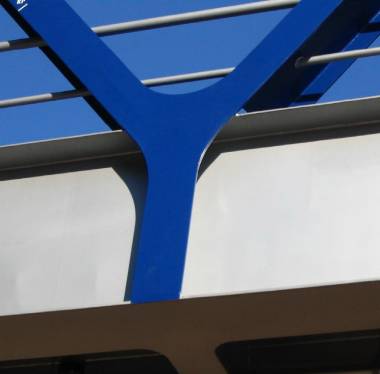 Příspěvek se zabývá návrhem ocelových mostů s dolní mostovkou, u nichž je zvoleno konstrukční a statické řešení odlišné proti MVL 212. Hlavní nosná konstrukce je navržena jako trám vyztužený příhradovinou. Horní pas je navržen jako uzavřený průřez a výrazně upraveny jsou detaily dolního pasu a stěny žlabu KL s cílem minimalizovat korozně a údržbově nepříznivé detaily. V příspěvku jsou dále prezentovány dva realizované příhradové mosty, u kterých bylo výše uvedené řešení použito. Vývoj ocelových mostů s dolní mostovkou K návrhu železničních mostů s plně integrovanou mostovkou do nosného systému nás postupem času přivedly projekty silničních mostů s dolní mostovkou, které jsme v naší kanceláři projektovali. Tyto silniční mosty byly vesměs navrženy jako trám vyztužený příhradovinou či obloukem. Dolní pas byl tvořen svařovaným I-profilem, který byl vytažen nad povrch římsy. Mostovku jsme navrhovali jako železobetonovou desku spřaženou s ocelovými příčníky s využitím spřahovací lišty. Železobetonová deska mostovky nebyla dotažena až ke stěně I-profilu dolního pasu, ale byla ukončena krycím plechem, který se stěnou I-profilu tvořil uzavřenou komoru. Pásnice diagonál pak navazují na tvarované styčníkové plechy, které přechází do příčných výztuh tvaru písmene "T". Železniční mosty s mostovkou integrovanou do nosného systému Při návrhu nových železničních mostů jsme se snažili odstranit nevýhody, které jsme viděli u návrhu styčníku dolního pasu podle MVL 212: − problematický prostup diagonál přes obslužnou lávku, − obtížná údržba, − konstrukčně složité řešení z hlediska výroby (množství prvků...), − obtížně přístupné detaily z hlediska aplikace PKO, − mostovka spolupůsobí s dolním pasem pouze přes ohybovou tuhost příčníků.U námi projektovaných mostů jsme navrhli dolní pas s mostovkou plně integrovanou do nosného systému, kde je mostovkový plech dotažen až ke stěně svařovaného I-profilu dolního pasu. Svařovaný I-profil je vytažen nad povrch kolejového lože. Bok žlabu pak tvoří společně s horní pásnicí I-profilu a s mostovkovým plechem uzavřenou komoru. Pásnice diagonál navazují na tvarované styčníkové plechy, které jsou součástí boku kolejového žlabu (z vnitřní strany) a z vnější strany navazují na příčnou výztuhu tvaru písmene "T". Toto řešení má oproti tradičnímu návrhu dle MVL 212 tyto výhody: − jednoduché a estetické detaily styčníku diagonál a DP, − jednodušší výroba, − odstranění obtížně přístupných detailů z hlediska aplikace PKO, − mostovka spolupůsobí s dolním pasem po celé délce DP, − nedochází k hromadění nečistot, je zajištěn plynulý odtok vody z povrchu DP, − ukazuje se, že řešení je úsporné i s ohledem na spotřebu materiálu, − dolní pás o větší tuhosti umožňuje snížit celkovou výšku příhradového nosníku oproti řešení dle MVL 212, což působí dobře z hlediska estetiky. Snížení celkové výšky příhradového nosníku má také za následek zvýšení tuhosti příčných polorámů, které zajišťují stabilitu horního tlačeného pásu. U dále prezentovaných mostů jsme navrhli horní pas příhradového nosníku z uzavřeného truhlíkového profilu, který přechází plynule do krajní diagonály stejného průřezu. Zesílení krajní tlačené diagonály zvyšuje tuhost koncového polorámu a také přispívá ke stabilitě horního tlačeného pásu. Uzavřený truhlíkový průřez horního pasu vykazuje vhodnější tvar z hlediska aplikace a údržby PKO (menší plocha, obvod dobře přístupný pro opravu PKO) a také z hlediska stability proti „kloboukovému“ profilu dle MVL 212 (použití výhodnější vzpěrnostní křivky pro uzavřený průřez). Výše uvedené úpravy oproti MVL 212 umožňují navrhnout příhradové nosníky kosoúhlé soustavy i pro větší rozpětí. Řešení dolního pasu s mostovkou plně integrovanou do nosného systému budeme dále prezentovat na dvou příkladech již zrealizovaných železničních mostů. Most u České Skalice na přeložce silnice I/33 První železniční most, u kterého jsme použili dolní mostovku plně integrovanou do nosného systému je SO651 u České Skalice na přeložce silnice I/33.Jedná se o mimoúrovňové křížení stávající železniční tratě s tehdy nově budovanou přeložkou silnice I. třídy. V okamžiku výstavby mostu nebyl proveden zářez pro budoucí komunikaci, proto byla nosná ocelová konstrukce montována více méně v úrovni původního terénu, což zjednodušovalo montáž nosné konstrukce. Na obr. 3 jsou ukázány detaily styčníku dolního pasu s diagonálami z vnější a vnitřní strany. Stěny diagonál jsou ukončeny výpalem na celou šířku stěny, aby byl umožněn plynulý odtok vody a tím bylo zabráněno hromadění nečistot na povrchu konstrukce. Most byl dokončen v roce 2004.