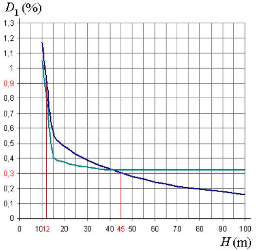Obrázek 2: Diagram závislosti D1 (%) na výšce úrovně zástavby H (m)