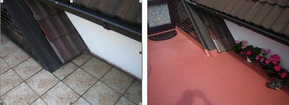 - Triflex BWS – vyztužený systém určený pod dlažbu lepenou do flexibilního lepidla Důležitou vlastností systémů je to, že je lze aplikovat na stávající pochozí plochy pokryté dlažbou. Tyto systémy mají svá specifika, a proto bych při jejich představení uvítal osobní kontakt. Jsou to systémy šité „na míru“ na konkrétní projekty. Je potřeba důsledně dodržet technologické postupy a zohlednit okrajové podmínky při jejich návrhu. Pro ilustraci posílám letošní referenční terasu, která byla provedena v systému Triflex BTS-P s barevnou úpravou a vsypem protiskluzných mikrochipsů.