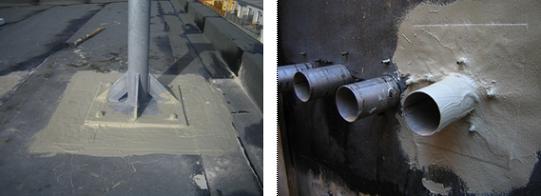 Příklad některých detailů, které byly Triflex ProDetailem řešeny: - Napojení vodotěsné izolace balkonů na rámy dveří, sloupky zábradlí, svislé stěny, oplechování, napojení různých druhů vodotěsných izolací mezi sebou