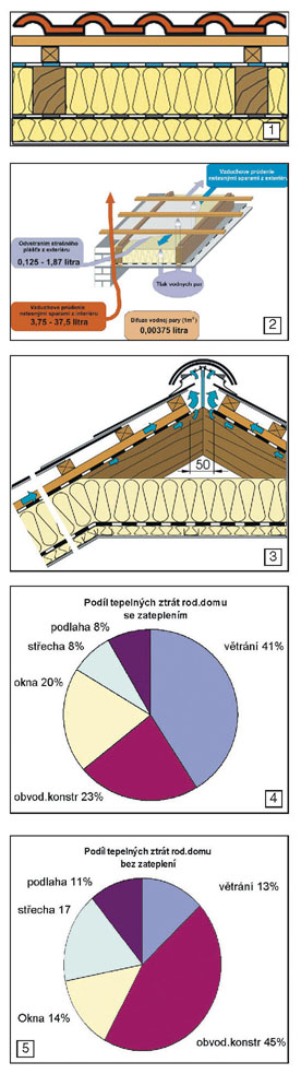 Dobře zateplené a utěsněné podkroví bude energeticky úsporné, ale pobytem osob v podkroví a provozem bude docházet ke zvyšování vlhkosti vzduchu a spotřebě kyslíku. Nejsnadnějším a nejjednoduším způsobem je rychlé a krátkodobé vyvětrání. I krátkodobé vyvětrání způsobuje značné energetické ztráty, které ve velmi dobře zatepleném podkroví nebudou malé. Energetické ztráty větráním v zatepleném objektu jsou tři až pětkrát větší než u nezatepleného objektu. Dosáhnout rovnoměrné teploty v místnosti větrané oknem není snadné. Abychom měly kontrolovanou výměnu vzduchu a větráním nám nevznikaly další tepelné ztráty, je vhodné použít rekuperační jednotky, které studený čerstvý venkovní vzduch předehřejí teplým znečištěným interiérovým vzduchem. Velmi jednoduché a spolehlivé zařízení za nás řeší výměnu vzduchu a rovnoměrnou teplotu v podkroví. Závěr Výstavba obytného podkroví není jednoduchou stavbou a vyžaduje dobré stavební znalosti a vysokou zodpovědnost za provedené práce. To, co můžeme někdy vidět na realizovaných stavbách je nejenom odstrašující, ale alarmující. Kdo je schopen zkontrolovat provádění stavebních prácí? Dnes nevystačíme se znalostmi získanými v minulosti. Kde můžeme znalosti získat? Přední výrobci stavebních materiálů pořádají pro realizační firmy proškolování v aplikacích svých materiálů, pořádají pro projektanty a realizátory semináře na téma se související problematikou, poskytují bezplatný technický servis a konzultace.
