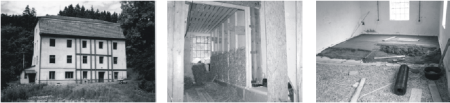 Obr. 16-18 - rekonstruovaný RD v Mnichovicích. Foto A. Brotánek. 4.3 Environmentální hodnocení konstrukčních variant Environmentální analýza naznačuje potenciál těchto materiálů z hlediska snížení vlivu stavebních konstrukcí na životní prostředí. Z hlediska principů udržitelného rozvoje je dalším důležitým faktorem využití lokálních zdrojů těchto materiálů a to nejen s ohledem na snížení energetických nároků spojených z dopravou, ale také z hlediska širších sociálně kulturních a ekonomických souvislostí, což může být při takto malých objemech prioritní hledisko. Vzhledem k tomu, že srovnávací data pro environmentální hodnocení budov a konstrukcí nejsou k dosud k dispozici, je analýza provedena procentuálním porovnáním navrženého řešení s referenčním „běžným“ řešením.