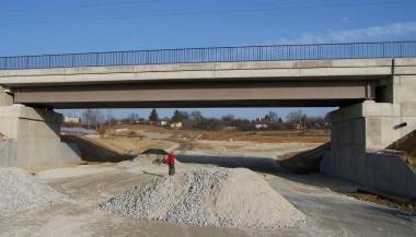 V rámci propojení dopravních okruhů v Českých Budějovicích je budována nová silniční komunikace I/34. V místě křížení se železničními tratěmi České Budějovice – Plzeň a České Budějovice – Praha byl v roce 2009 postaven nový železniční most o jednom mostním otvoru. Přes budoucí komunikaci jsou převedeny dvě elektrifikované koleje, každá po své spřažené ocelobetonové konstrukci s horní mostovkou se štěrkovým ložem o rozpětí 27,0 m. Most je z technologických důvodů založen plošně. Územní podmínky Nově budovaná silnice I/34 kříží železniční tratě v intravilánu Českých Budějovic mezi nádražím a severní zastávkou. Vzhledem k niveletě tratí vedených na náspu vysokém cca 5 m bylo rozhodnuto novou komunikaci v daném místě zahloubit a vytvořit podjezd s průjezdnou výškou min. 4,8 m + 0,15 m rezerva. Pozemní komunikace o 4 pruzích kategorie MS 16,5/50 s oboustrannými chodníky šířky 3,0 m bude probíhat pod mostem výškově v údolnicovém oblouku R=500 m, směrově v pravostranném oblouku R=300 m a bude křížit trať v úhlu 70,3o. Koleje jsou na mostě v přímé, osová vzdálenost 4,0 m, výškově trať stoupá ve sklonu 0,3 ‰. Traťová rychlost je 100 km/h. Na mostě je zajištěn sdružený volný mostní průřez VMP 3,0, který byl navržen v rámci modernizace trati. Železobetonové spřažené desky vytváří spolu s římsami žlab pro uzavřené štěrkové lože min. tloušťky 550 mm. Geotechnické podmínky pro založení objektu: pod vrstvou navážky o mocnosti cca 1,5 m byly do hloubky cca 7,3 m zjištěny písčité a štěrkovité naplaveniny, které jsou převážně středně ulehlé až ulehlé. Od hloubky 7,3 m byly zjištěny pánevní jíly pevné konzistence. Podzemní voda byla naražena a ustálila se cca 2,5 m pod stávajícím terénem. Plošné základy byly prováděny pod úrovní hladiny podzemní vody, kterou bylo nutné po dobu zakládání snížit čerpáním. Celková koncepce mostu Mostní objekt sestává ze 2 samostatných konstrukcí pro jednotlivé koleje, podélná spára mezi konstrukcemi je těsněna lamelovým závěrem. Každá konstrukce je tvořena železobetonovou deskou spřaženou s ocelovou částí složenou ze 4 hlavních nosníků tvaru I a příčníků. Hlavní nosníky jsou od sebe vzdáleny konstantně 1,0 m, proměnné výšky 1295 - 1435 mm (1450 mm krajní nosník u římsy). Nosník u římsy je masivnější, neboť vynáší větší část stálého zatížení. Dolní pásnice jsou vodorovné a horní pásnice mají v podélném směru oboustranný střechovitý sklon směrem od středu mostu. Tento sklon kopíruje spřažená deska z betonu C34/45. Její horní povrch pak umožňuje odvést vodu z nosné konstrukce směrem k opěrám. Příčné mostní závěry nebyly použity, voda je převáděna přesahem desky přes závěrnou zídku a dále je odváděna příčnými drenážemi DN200 za rubem opěry do žlabovek a do kanalizace. Mezilehlé příčníky ocelové nosné konstrukce ve třetinách rozpětí jsou tvořeny U profily výšky 200 mm, koncové příčníky jsou tvaru I na celou výšku hlavních nosníků a konstrukce je přes ně uložena na hrncová ložiska. Nosné konstrukce jsou uspořádány jako prosté nosníky s šikmým uložením. Opěry jsou železobetonové, opatřené jak rovnoběžnými, tak kolmými křídly. Líce opěr a kolmá křídla jsou obloženy řádkovým zdivem ze žuly. Most je založen na plošných základech šířky 6,85 m a délky 13,5 m, které respektují šikmost opěr a konstrukce. Spodní stavba mostu včetně založení byla prováděna za provozu na trati pod ochranou provizoríí. Proto nebylo použito založení na pilotách, neboť zde nebyl dostatečný prostor (zejména výška) pro vrtací soupravu. Postup výstavby Jelikož se jedná o dvoukolejný most na souběhu významných tratí, bylo vše podřízeno požadavku co nejmenšího omezení železničního provozu. Do každé z tratí byla vložena 3 mostní provizoria ve složení KN 245 + DNP 65 + KN 245. Celková délka provizorního přemostění byla 53 m. Vzhledem k šikmosti křížení nové komunikace s tratěmi byla obě soumostí vůči sobě posunuta o 1,0 m. Pod dvěmi krajními poli probíhala výstavba obou opěr, pod středním polem byl zajištěn průjezd pro staveništní dopravu. Mostní provizoria KN 245 byla osazena na koncích na železobetonové prefabrikované úložné bloky, které jsou součástí dodávky MP. Součástí tohoto bloku je i závěrná zídka a krátká rovnoběžná křídla. Mezilehlé vnitřní podpěry byly postaveny z inventárního materiálu PIŽMO. Byl navržen pilíř o rozměru 2 x 4 m, tj. celkem 6 sloupků (2x 3) zavětrovaných po všech stranách. Sloupky byly sešroubovány s dvojicemi roštových nosníků, které byly osazeny na srovnané panely. Hlavice podpěry byla vytvořena opět z roštových nosníků spojených do dvojic, resp. trojic. Na horní plochu vrchního roštu byly osazeny ocelové desky, na které byla fixována ložiska provizorií. Vzhledem k rozdílným stavebním výškám sousedních MP byla tato disproporce vyřešena vypodložením DNP dalšími 2 vrstvami roštových nosníků – v podélném a příčném směru. Podélný nosník dl. 6,5 m překlenul prostor mezi oběma pilíři, což umožnilo podepřít DNP i uprostřed rozpětí a tím byl omezen jeho průhyb. Mezi pražce byly protaženy dřevěné hranoly, které sloužily jako nosný systém dřevěné podlahy a vnějšího zábradlí. Pilíře byly proti nárazu vozidel stavby ochráněny betonovými svodidly výšky 0,8 m, které vymezily průjezdní šířku 3,0 m mezi věžemi při minimální výšce 4,1 m. Jednotlivé výluky v kolejích: − 3N v koleji č. 2: Během výluky bylo do tratě Č. Budějovice – Praha vloženo MP KN 245 tak, aby se nemuselo